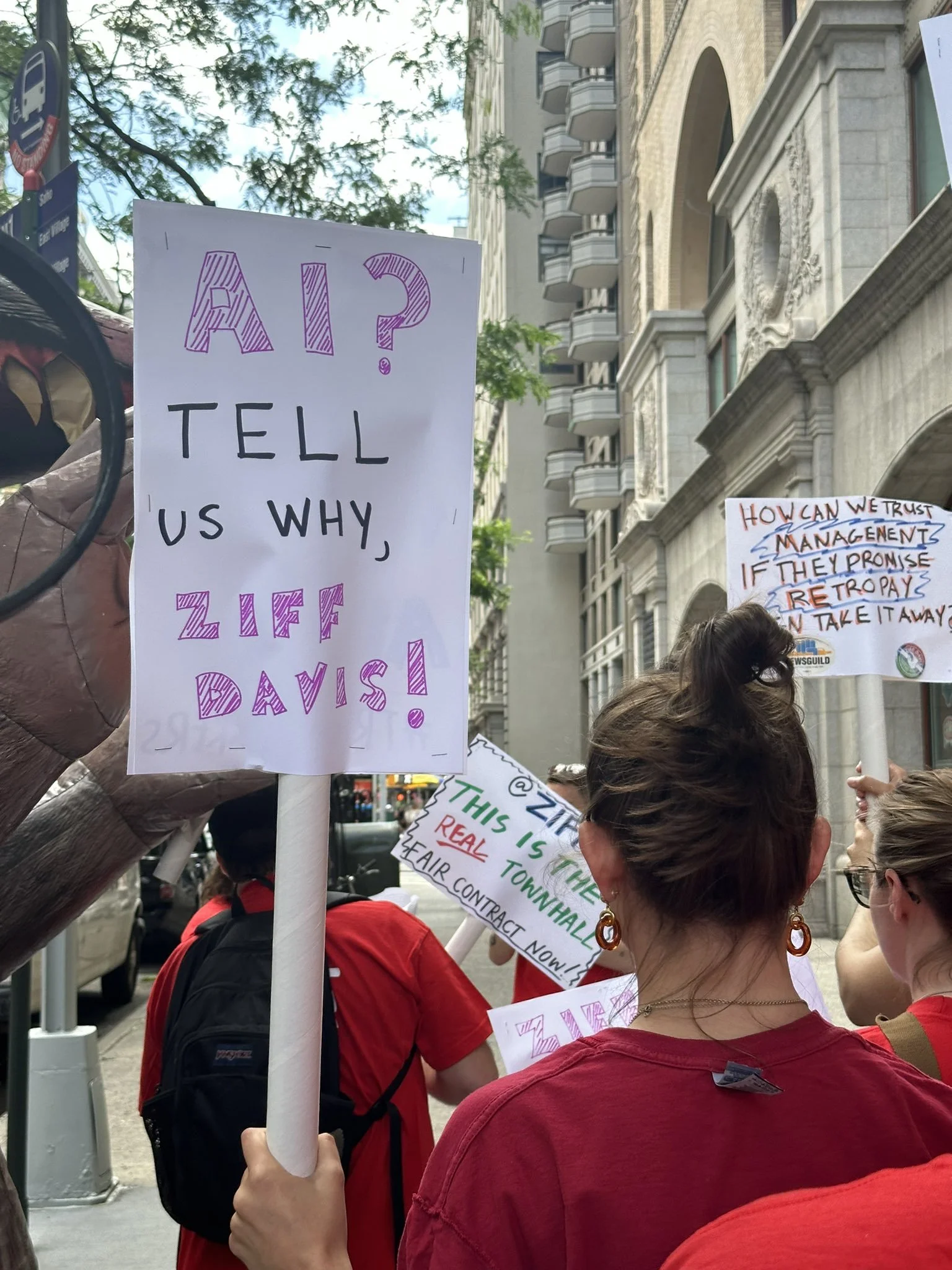 No layoffs. No salary reductions. Some media companies have implemented layoffs to replace humans with robots. That’s led to fake news articles and product reviews done by fake reporters with AI-generated profiles. In our newsrooms, we fight to prioritize work created by humans and protect against layoffs and salary reductions. The people in our communities deserve the dignity of coverage by human beings. Journalism for humans by humans.