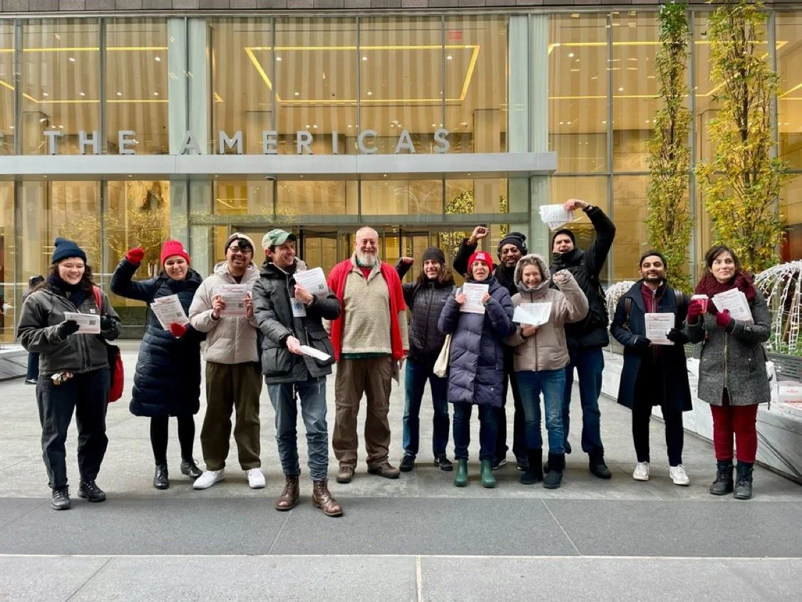 NewsGuild of New York-represented workers at Reuters braved the cold to share an important message with those headed in to attend a corporate event hosted by Reuters’ execs in NYC: “We deserve a fair contract that includes AI job protections. We stand for people-powered journalism.”
