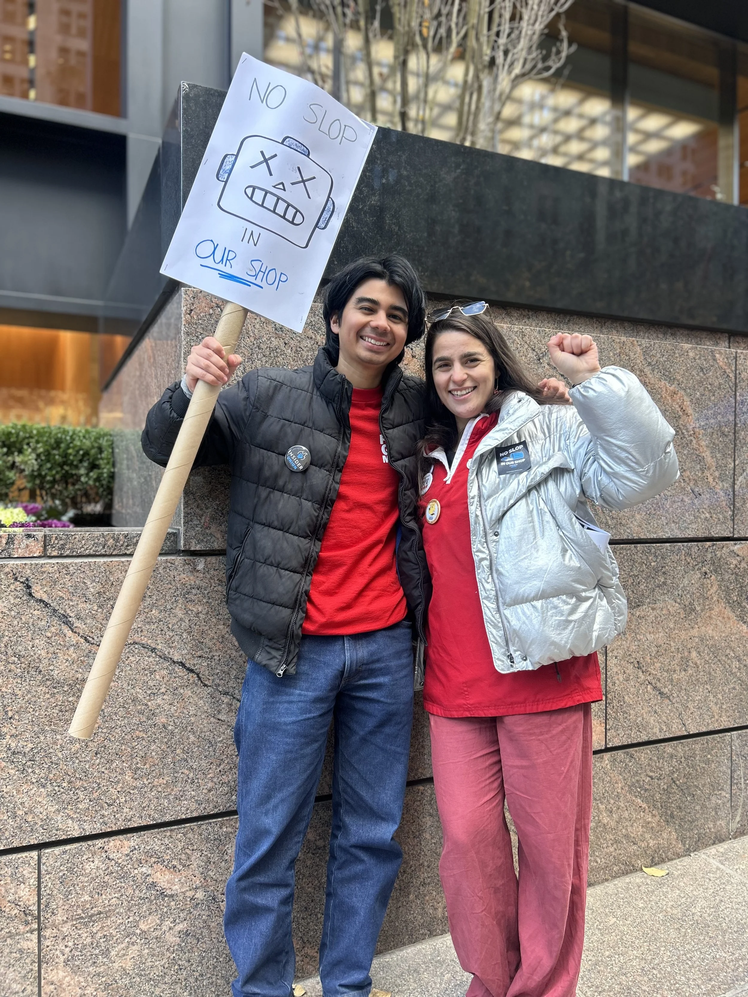 “When we went on strike more than two years ago to win our first contract, many of us held signs that said ‘Don’t replace me with ChatGPT. And yet, it now appears that Business Insider management and their parent company, German publishing house Axel Springer, wants to do exactly that: replace our unit’s work with AI-generated slop.